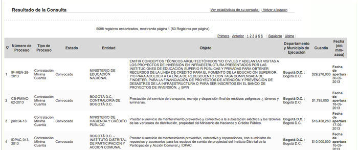 Después de seleccionar los filtros de la búsqueda, aparecerán todos los procesos que cumplan con los criterios establecidos.
