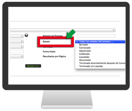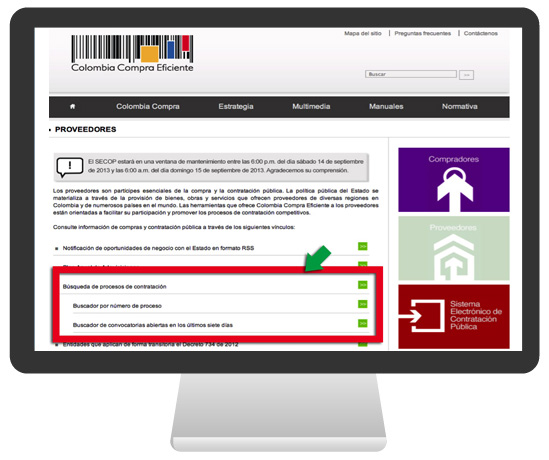 En el área central de la página “Proveedores” se puede acceder al buscador de información por procesos de contratación: