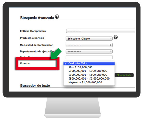 Cuantía. Como se muestra en la siguiente gráfica, este criterio permite a las mipymes consultar el rango de la cuantía del proceso de contratación.